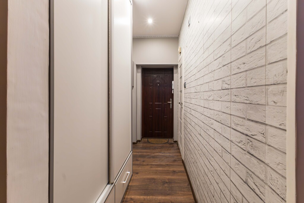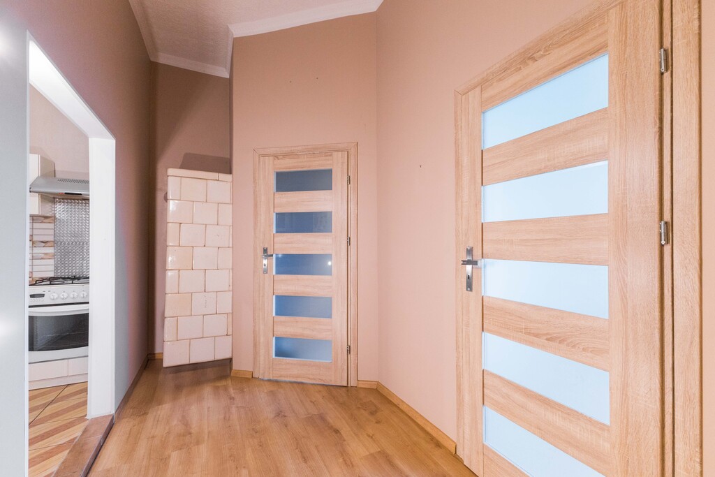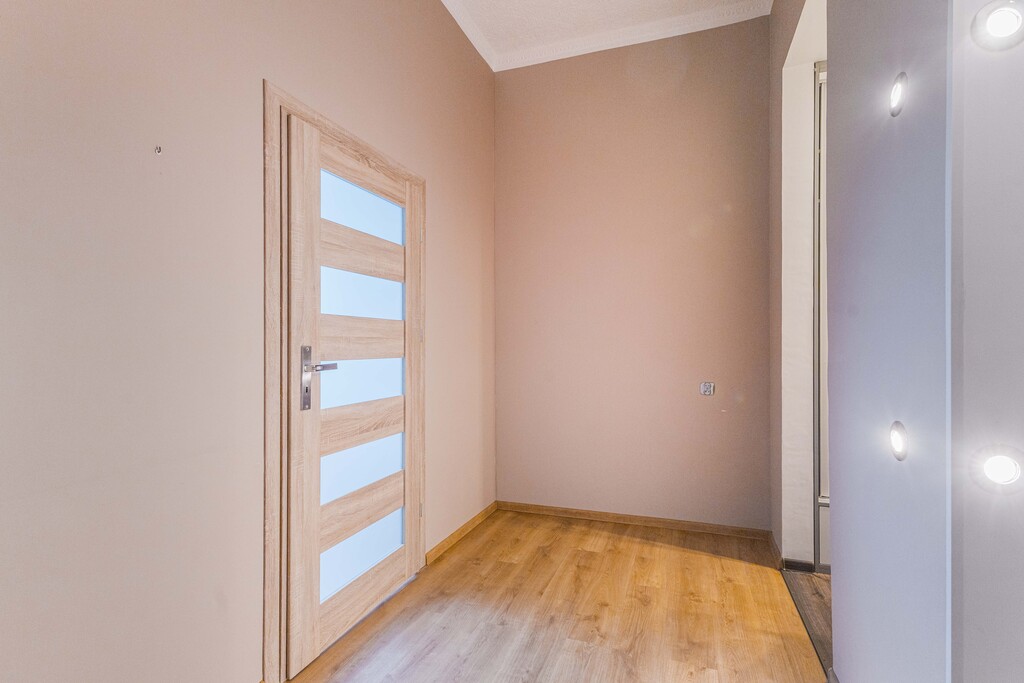 Lokal zlokalizowany jest na pierwszym piętrze budynku wielolokalowego, składa się z dwóch pokoi, kuchni, łazienki i korytarza o łącznej powierzchni ok. 35 m2. Kuchnia wyposażona i urządzona: zmywarka, pralka, kuchenka gazowa, piekarnik. W łazience prysznic z wysokim brodzikiem. W jednym z pokoi antresola, w korytarzu duża szafa przesuwna.