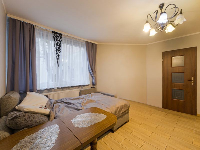 Mieszkanie usytuowane na parterze stanowi oficynę budynku wielorodzinnego. Lokal o powierzchni 79,67m2 składa się z 4 pokoi, kuchni, łazienki, korytarza oraz spiżarni. Kuchnia umeblowana wraz ze sprzętami, kuchenka gazowa, pokoje umeblowane. Przestronna łazienka, w płytkach z wanną i miejscem na pralkę. Okna PCV, ogrzewanie centralne gazowe- piec zainstalowany w kuchni.