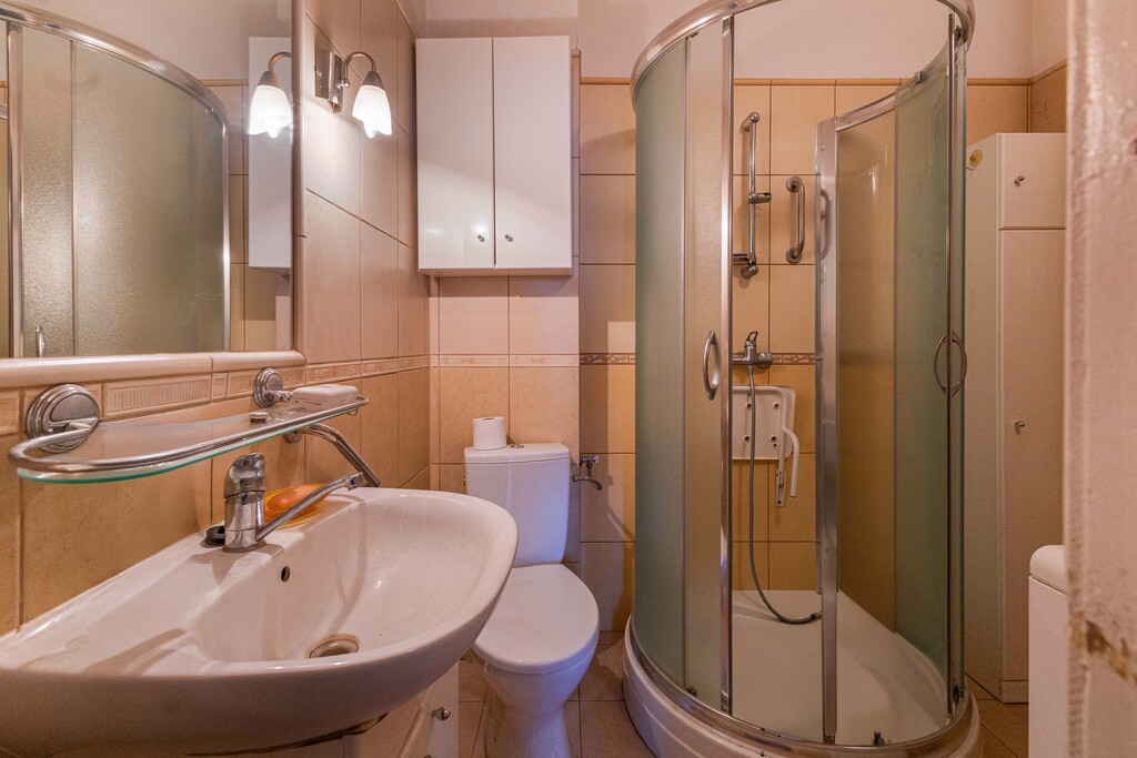 – na piętrze- poddaszu- mieszkanie 2 pokojowe z kuchnią i łazienką.