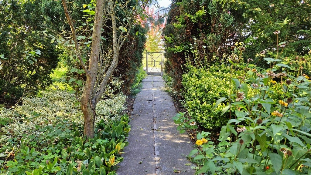 Budynek posadowiony jest na pięknej działce, która obecnie jest zabudowana także budynkiem garażowo-gospodarczym, obsadzona krzewami i porośnięta drzewami, min. owocowymi o starych tradycyjnych odmianach.