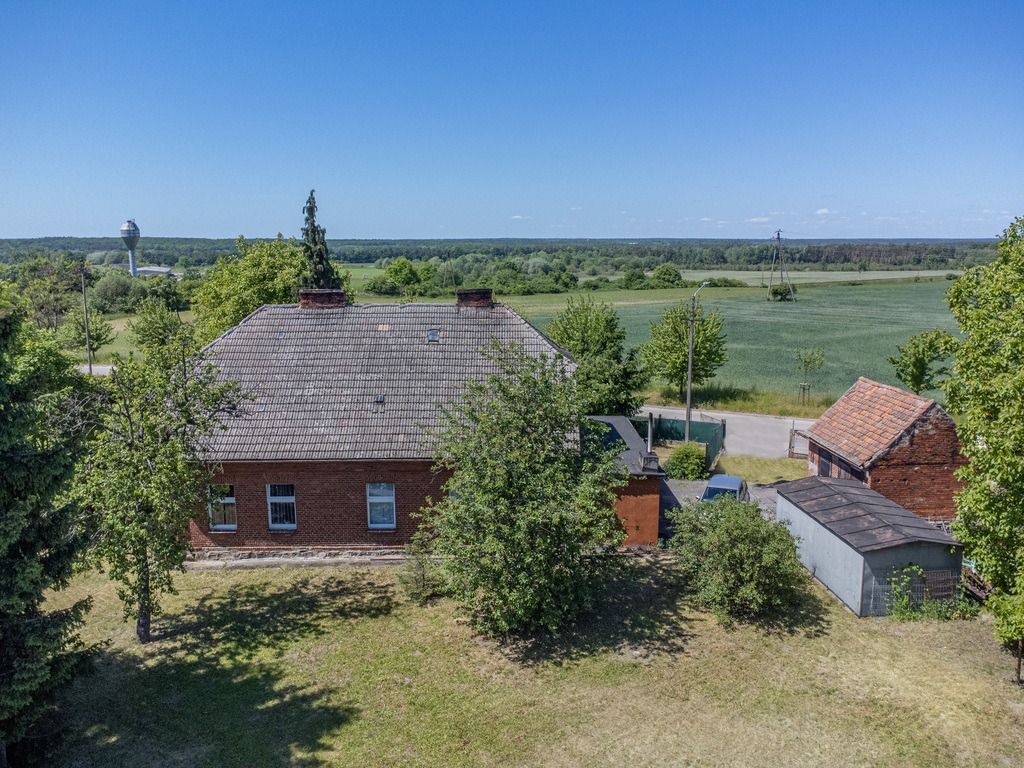 Budynek mieszkalny ma powierzchnię (w przybliżeniu) ok. 100 m2, na którą składają się 4 pokoje, 2 kuchnie, łazienka, korytarz, przybudówka częściowo podpiwniczona. Na piętro budynku prowadzą schody drewniane, znajduje się tam korytarz i 4 pomieszczenia o nieco niższej wysokości a nad nimi niezagospodarowany strych. Parter budynku jest w dobrym stanie technicznym sukcesywnie przeprowadzano remonty, lecz wymiany wymagają instalacje, centralne ogrzewanie (obecnie budynek ogrzewany jest piecami). Wymieniono także okna na parterze, piętro to okna drewniane starego typu.