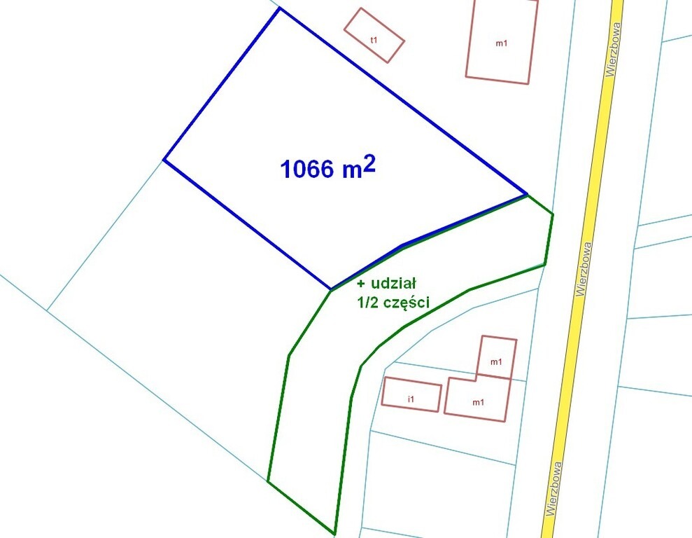 Wraz z działką, w podanej cenie, zbywany jest udział 1/2 części w działce zapewniającej dostęp do drogi publicznej.