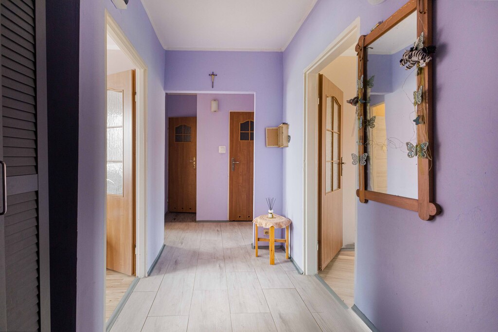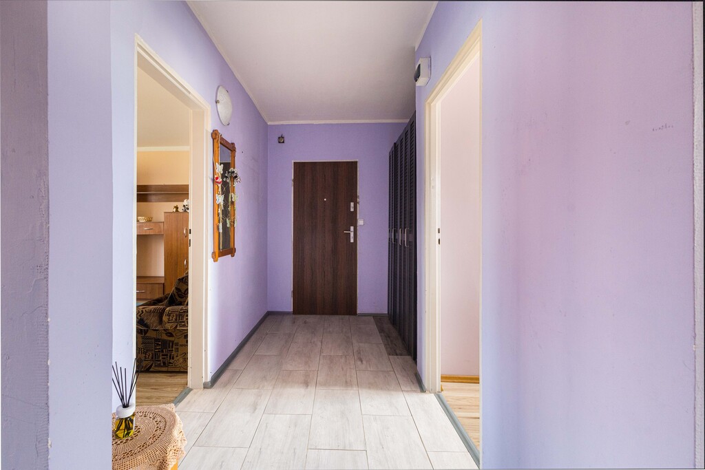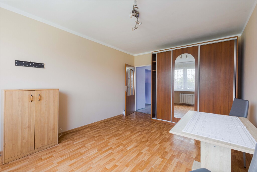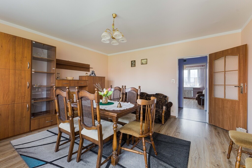 Lokal składa się z 3 pokoi, kuchni, łazienki, toalety, oraz korytarza. Z większego pokoju wyjście na balkon.