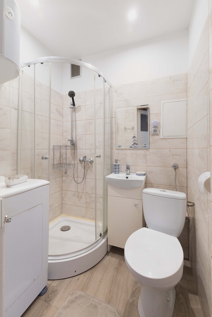 Łazienka wyremontowana kilka lat temu. Woda ogrzewana bojlerem elektrycznym.