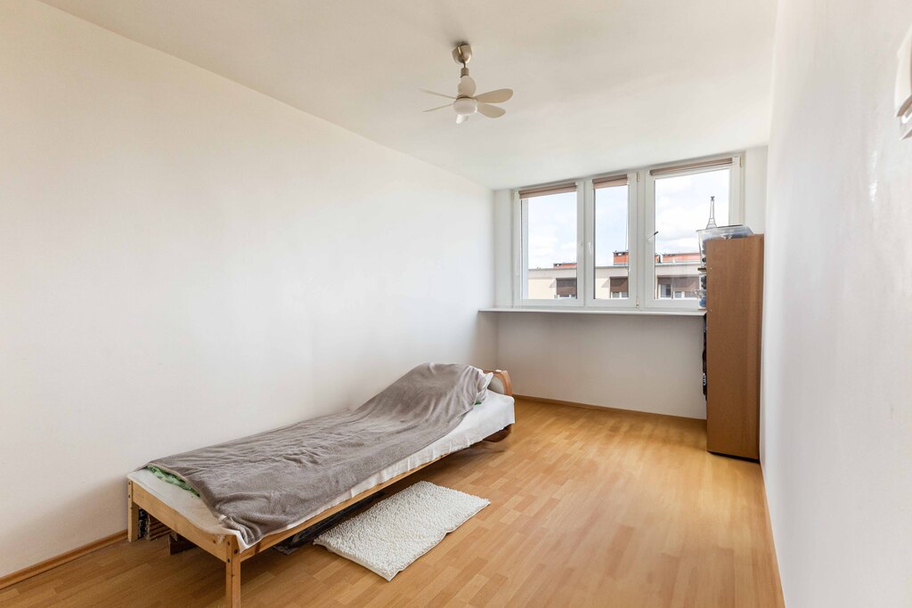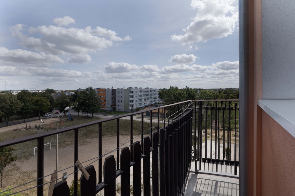 Mieszkanie w trakcie remontu – pokoje gotowe, kuchnia w trakcie prac (na dzień sprzedaży będą one ukończone). Z większego pokoju wyjście na balkon z widokiem na plac zabaw.