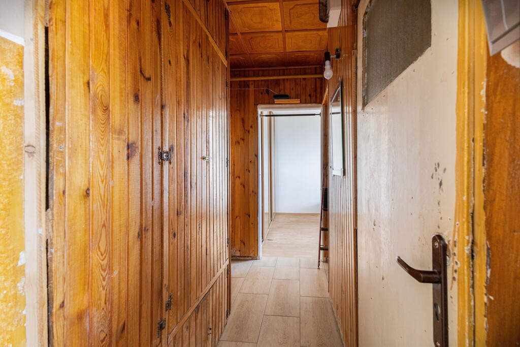 Podłogi wyłożone panelami winylowymi odpornymi na wilgoć, ściany gipsowane i malowane. Nowa wylewka na podłogach.