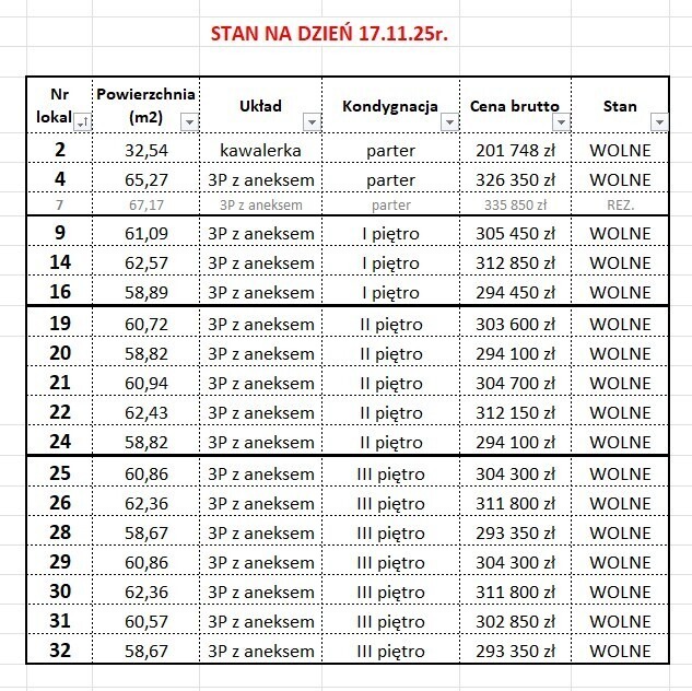 WYKAZ WOLNYCH MIESZKAŃ W ZAŁĄCZNIKU GRAFICZNYM DO OGŁOSZENIA.
