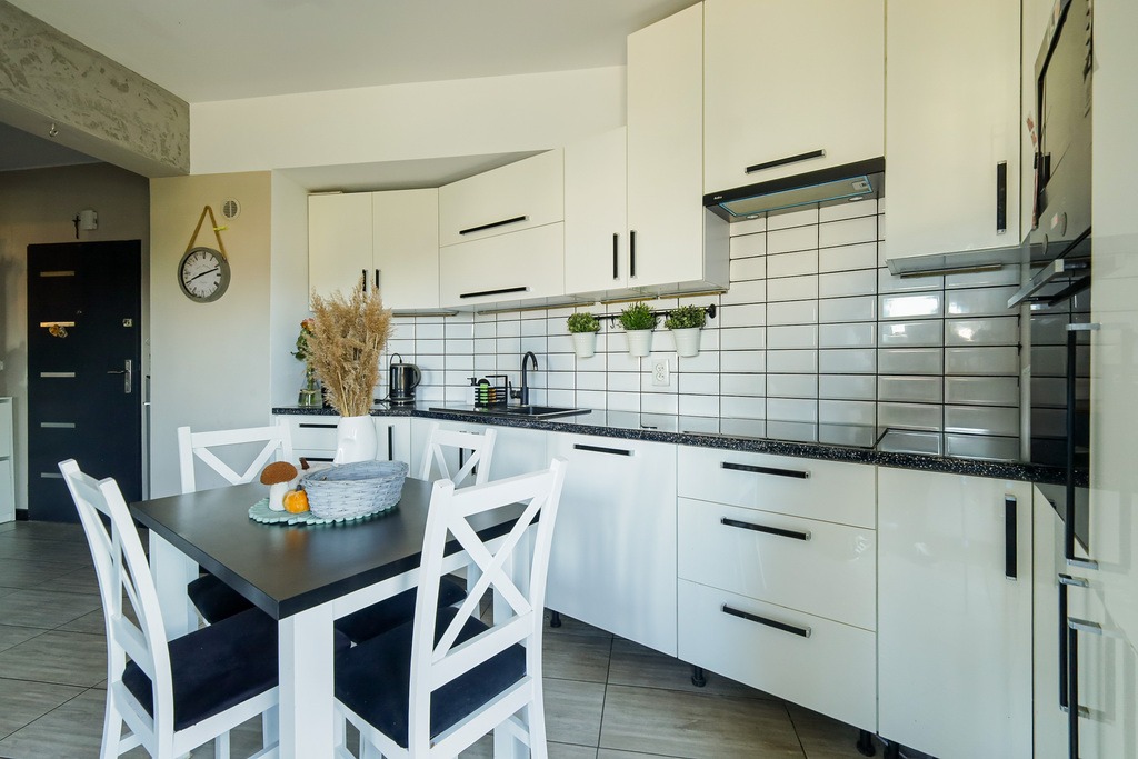 Mieszkanie w części umeblowane i kuchnia w pełni wyposażona – także w AGD (lodówka, zmywarka, piekarnik itd.)